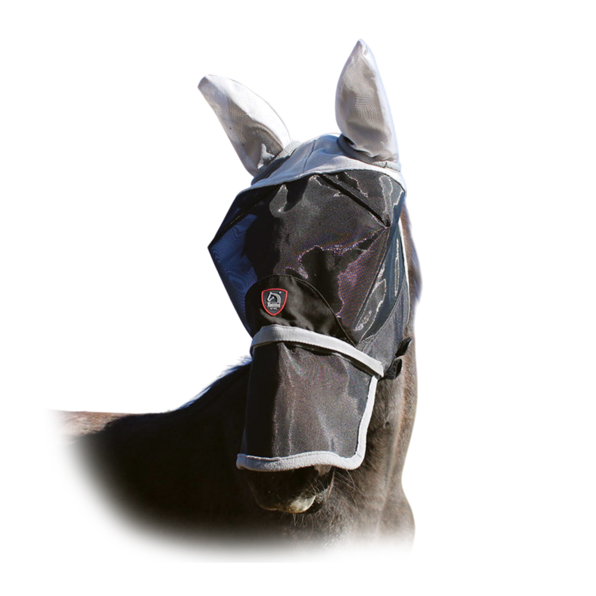 Супер-мягкая маска хорошо защищает от летающих насекомых. По краям отделана мягким флисом для большего комфорта лошади и предотваращения натирания, а эластичные застежки обеспечивают плотное прилегание.
